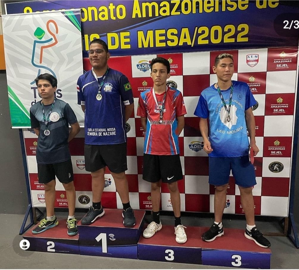 Nessa semana ocorreu o Jogos Escolares do Amazonas - Jea’s, e adivinha nossos atletas fizeram bonito na competição, no infantil masculino 12 a 14 anos 3 atletas no pódio, (🥇Vitor Negreiros, 🥉🥉Nelson Barros e Lucas mitsui) e no feminino 🥉 Manoela Ramos, e no Juvenil Masculino 🥇Evandro Vasconcelos, parabéns a todos os atletas que participaram e representarem bem as suas escolas.
